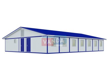 • многофункциональность использования. На первом этаже двухэтажного блок контейнера может располагаться пот охраны или пропускной пункт, а на втором этаже сам офис. Бытовка под офис может применяться не только для работы. Теплоизолирующие свойства пленки позволяют обустроить санузлы, душевые, раздевалки. Также можно часть здания использовать, как временную кухню или склад.
